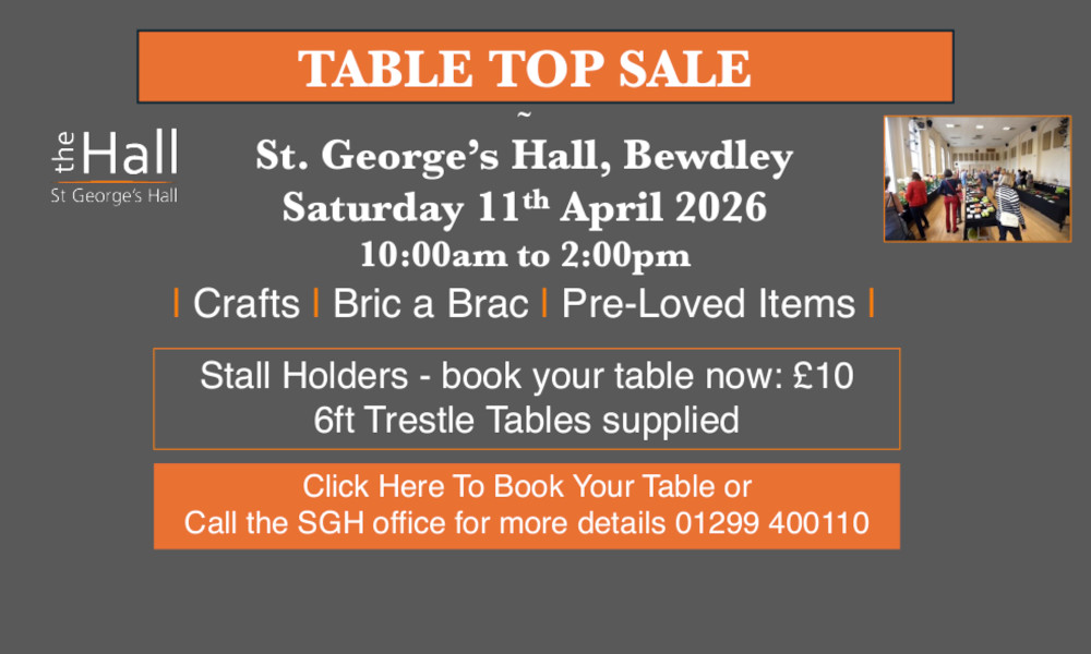 The St. George's Hall management team can be contacted during weekday working hours: telephone: 01299 400110 or email: info@thehall-bewdley.org.uk